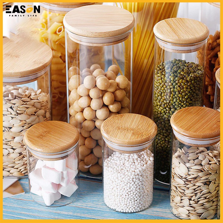 • Material: high borosilicate lead-free glass (hot and cold explosion-proof), bamboo wood Use for storage of dried fruits, Spaghetti,Penne Rigate,kitchen condiments, snacks, tea, coffee, etc.