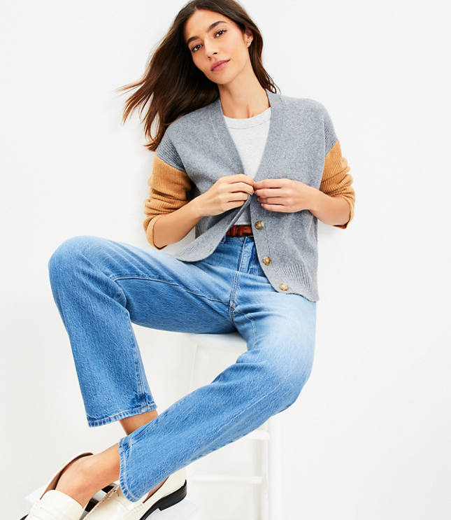 Loft Colorblock Ribbed Sleeve V-Neck Cardigan
